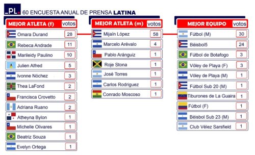 Ambos medios cubanos les dieron el beneficio a la paratleta cubana Omara Durand y a su compatriota luchador Mijaín López, quienes están al frente con holgura en las categorías Mejor Atleta Femenino y Masculino, respectivamente.