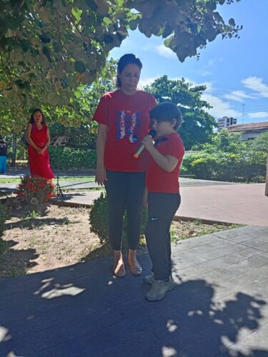 Rosas blancas para “el amigo sincero” fueron depositadas por los más pequeños ante un mural con la imagen del autor de la Edad de Oro (28 de enero de 1853-19 de mayo de 1895), que preside este espacio público cruceño.