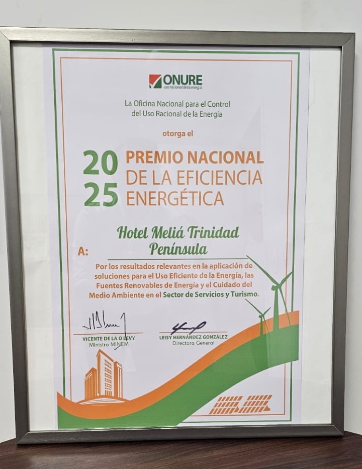 Este premio nos llena de orgullo y nos compromete a continuar trabajando bajo el enfoque de utilizar los avances de la ciencia y la técnica para lograr la gestión racional de la energía, destacó el Director General de Meliá Trinidad Península, Juan Pereira.