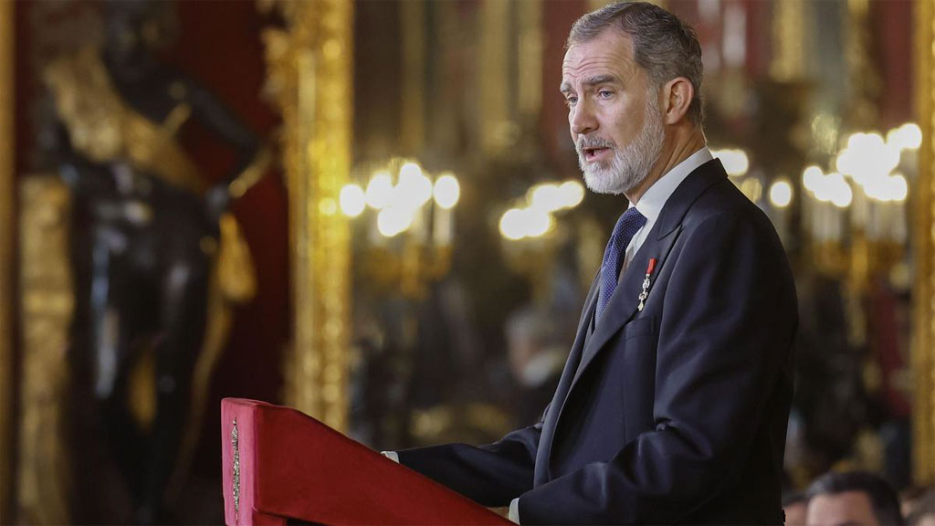 Al hablar ante el cuerpo diplomático en el Palacio Real de Madrid y en presencia del jefe del Gobierno, Pedro Sánchez, y el canciller, José Manuel Albares, el monarca reconoció un contexto muy complicado en el plano internacional.
