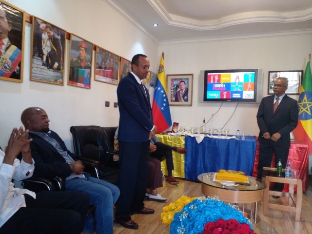 Miembros de las misiones diplomáticas de Cuba, Nicaragua, etíopes egresados de Caracas y de la isla caribeña se dieron cita en la embajada venezolana en Addis Abeba.