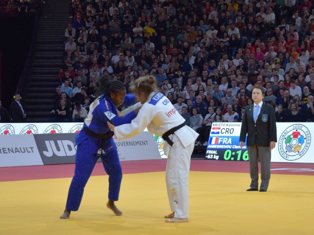La doble campeona olímpica de Tokio-2021 y seis veces mundial venció en la final en la regla de oro (tiempo extra) a la prometedora croata de 21 años Katarina Kristo, una victoria que estremeció los cimientos de la sala Accor Arena, en la que se dieron cita más de 10 mil personas en la segunda jornada del certamen.