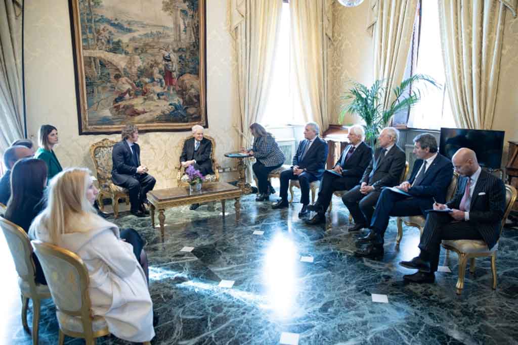 Mattarella y Milei evaluaron las positivas relaciones entre sus naciones y las vías para fortalecer los vínculos políticos, económicos, comerciales y en otras esferas, con el propósito de “iniciar una nueva etapa en el vínculo bilateral y dar una señal de confianza para las inversiones”.