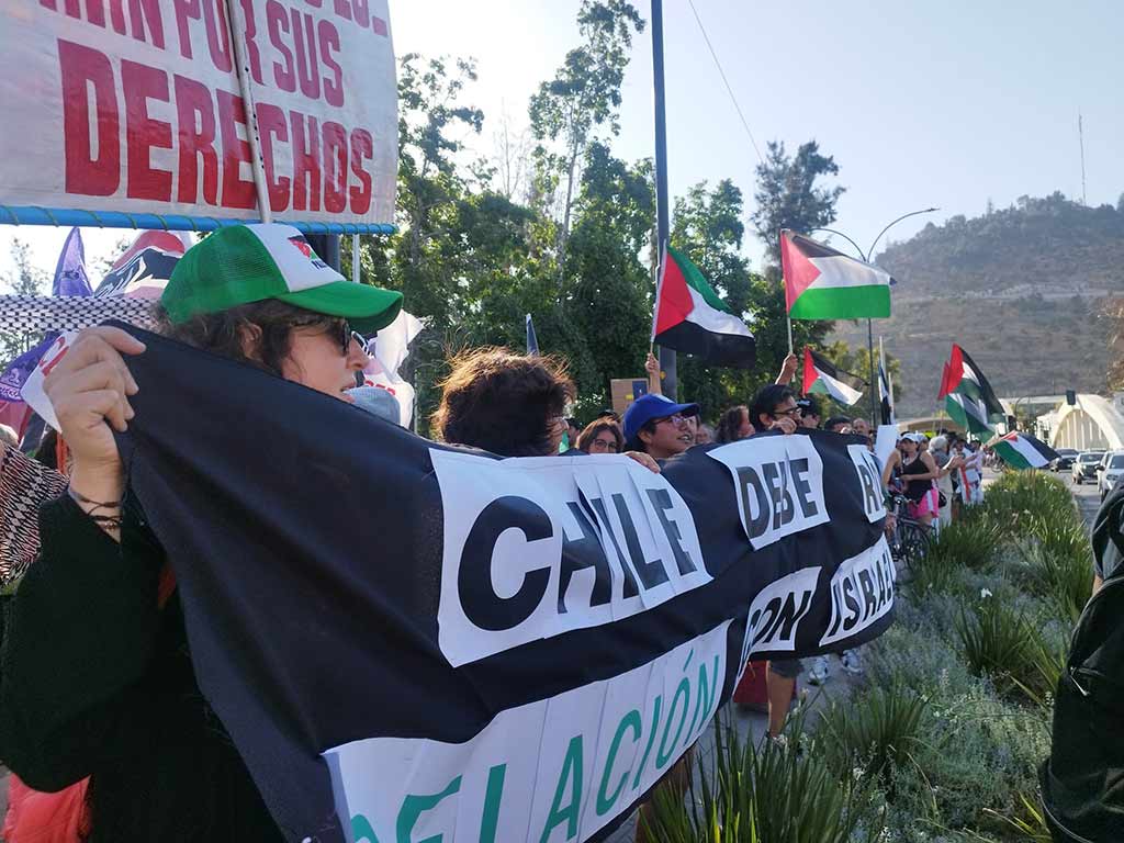 Convocados por la Coordinadora por Palestina, los manifestantes pidieron al gobierno de Chile romper relaciones con Israel y expulsar al embajador de Tel Aviv de Santiago.