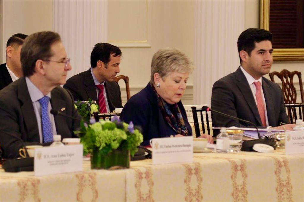 Después de su mensaje en la reunión, la canciller mexicana dijo a los periodistas que las tres naciones van a trabajar conjuntamente en infraestructura, en seguridad, y en el intercambio de información sobre el tráfico de personas, de drogas, de armas, creo que es un tema importantísimo.