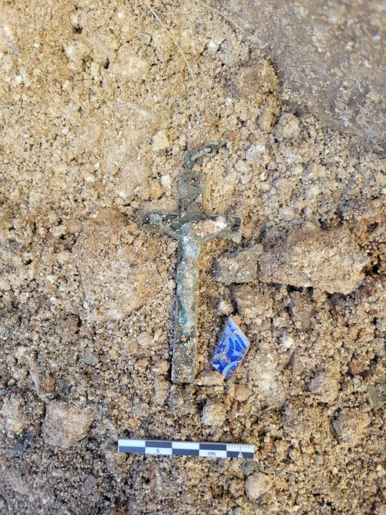 Dentro de los sepulcros se exhumaron huesos humanos dispersos, ya que los cuerpos fueron exhumados en 1915, y dos crucifijos de madera y bronce, siendo este último el hallazgo más significativo por su relación directa con la Orden Religiosa.
