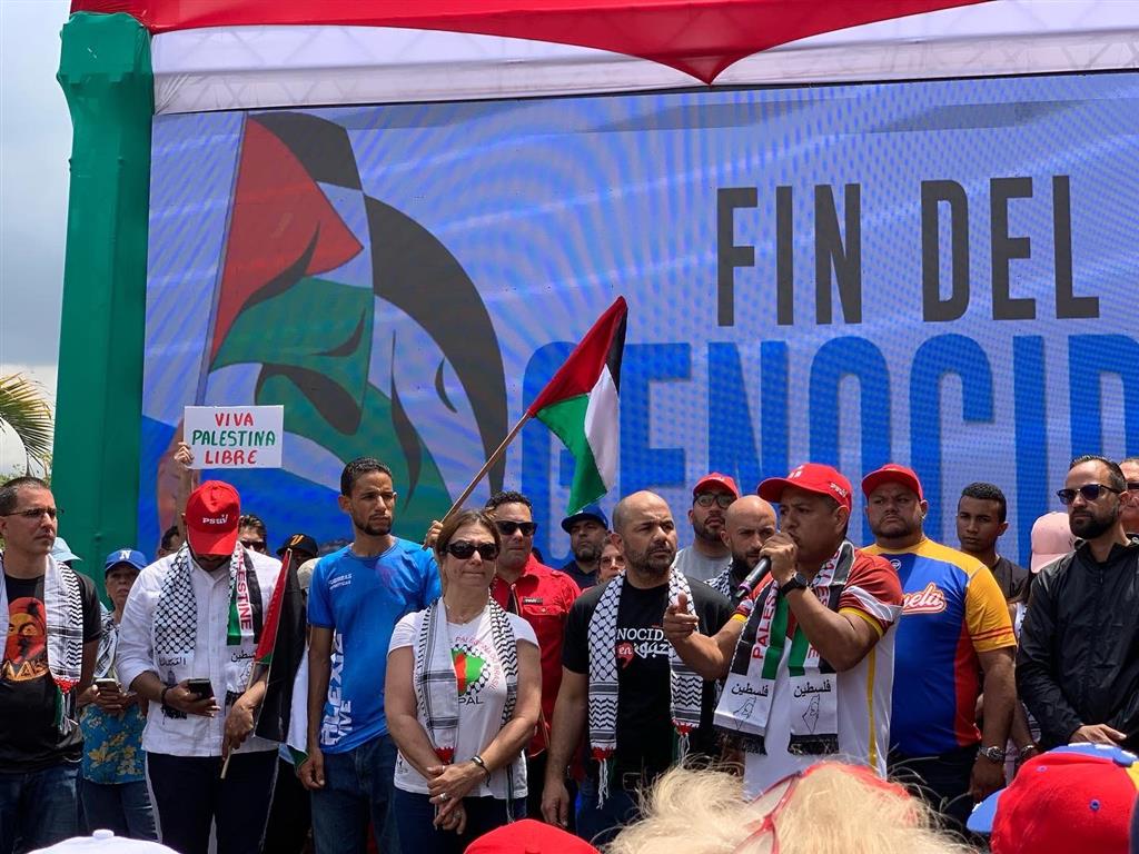 Durante un acto en solidaridad con la causa de ese pueblo, al que acudieron este sábado miles de venezolanos, Arreaza propuso la creación de una agenda permanente con movilizaciones en distintas ciudades de Venezuela y actividades culturales en apoyo a la lucha palestina.