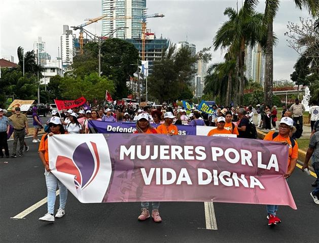 Ciudad de Panamá, 8 mar (Prensa Latina) Miles de panameñas tomaron hoy céntricas avenidas de la capital y marcharon hacia la Cinta Costera para reclamar derechos elementales como el acceso al empleo digno y ponerle fin a la violencia.