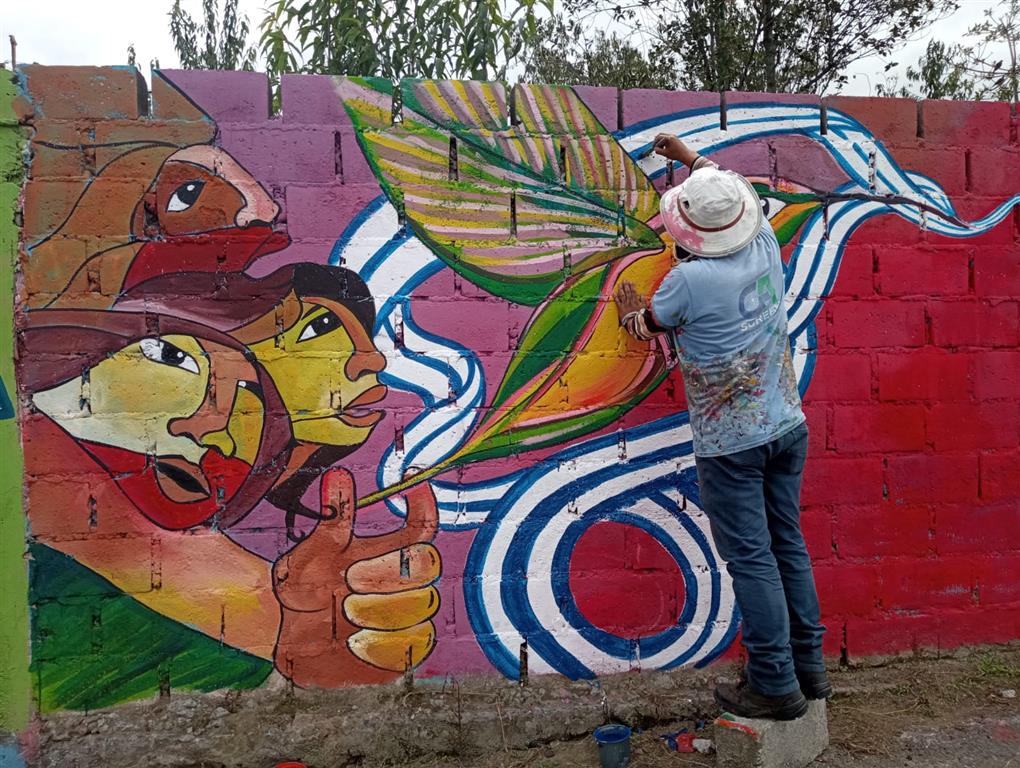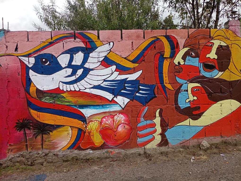 Durante dos fines de semana los activistas acudieron a para apoyar en la pintura del mural, desde donde se puede apreciar el conocido lago San Pablo, contó a Prensa Latina Amanda Trujillo, una de las impulsoras de la iniciativa.