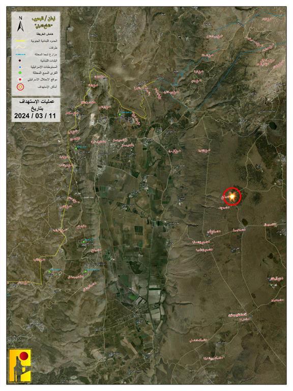 Antes del mediodía, la Resistencia libanesa llevó a cabo una acción contra una reunión de soldados enemigos en la colina de Al-Tayhat y sus armas apuntaron al emplazamiento de Jal Al-Alam, en el sector occidental de la frontera sur.