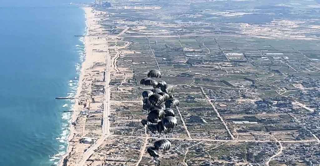 La nota recordó que la Fuerza Aérea nacional dejó caer en varias oportunidades productos vitales sobre el enclave costero, bajo fuego israelí desde hace 157 días.