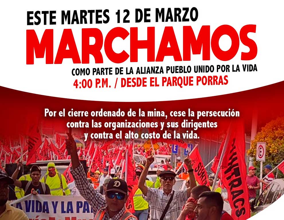 Otras reivindicaciones de la marcha será la protesta contra el alto costo de la vida, los despidos masivos y la persecución política a organizaciones sindicales y sus líderes como sucede con el Sindicato Único Nacional de los Trabajadores de la Industria de la Construcción y Similares (Suntracs),trascendió.