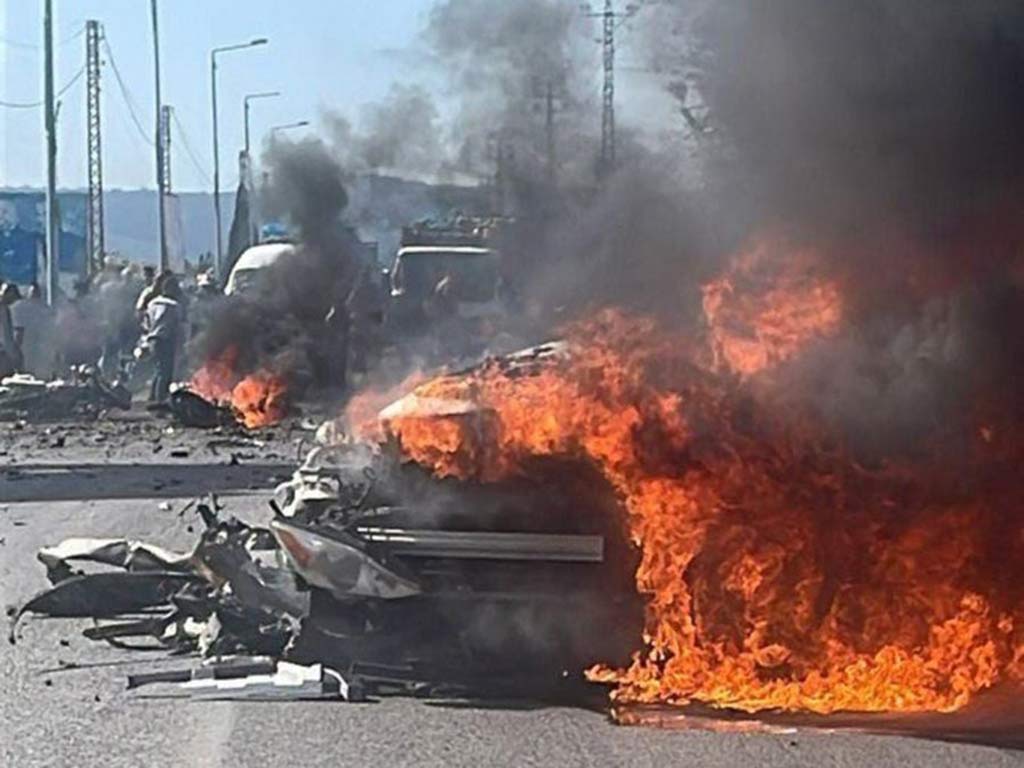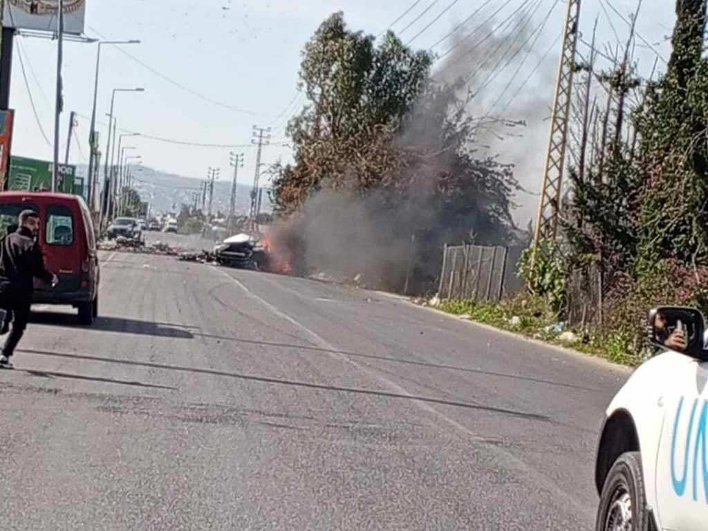 De acuerdo con reportes locales, el avión no tripulado perteneciente a las fuerzas de Tel Aviv bombardeó el carro en la carretera entre Tiro y Naqoura, en el sur del país.