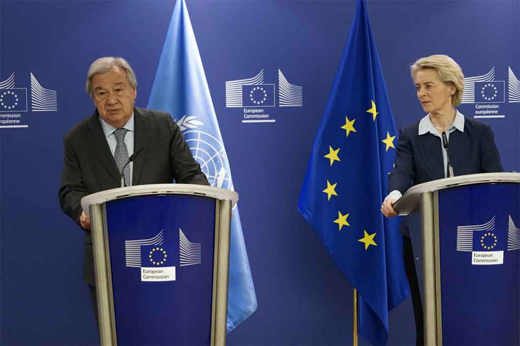 En una comparecencia ante la prensa, Guterres y Ursula von der Leyen abogaron por una mayor entrada de ayuda al enclave en una fuerte posición conjunta que consideró inaceptable las actuales condiciones para los civiles.