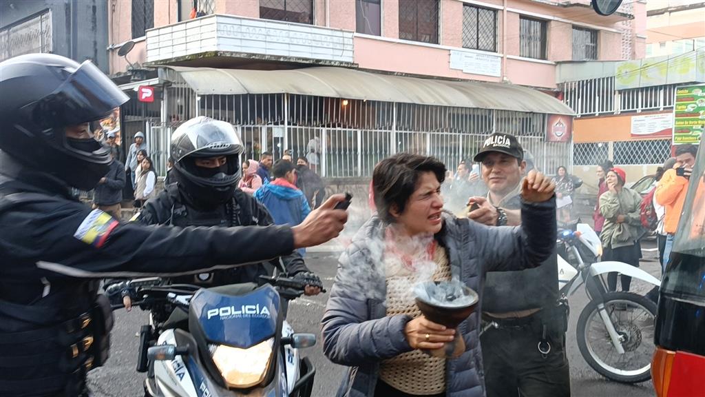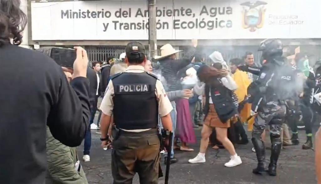 Policías y militares de #Ecuador reprimieron hoy con gases lacrimógenos una protesta contra el avance de la minería que tenía lugar frente al @Ambiente_Ec, en #Quito @PrensaLatina_cu pic.twitter.com/IrdHHCjSJK