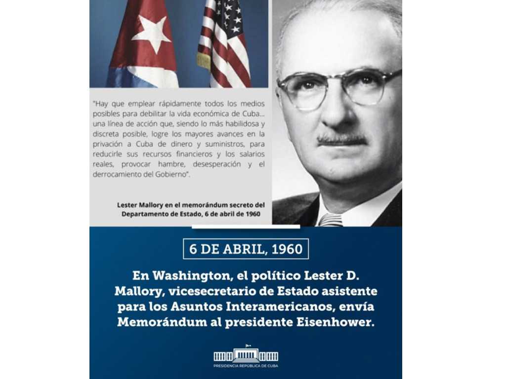 El 6 de abril de 1960 el subsecretario de Estado de Estados Unidos Lester Mallory envió el Memorando que condensó la política de bloqueo contra La Habana.
