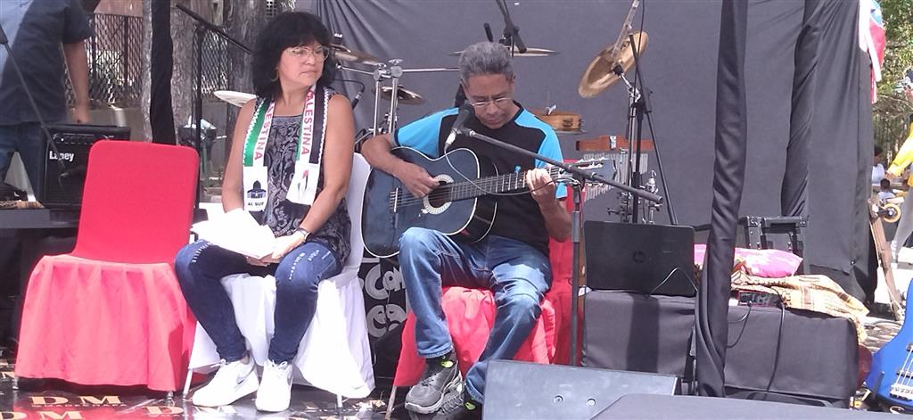 Poetas, trovadores, músicos, conferencistas, una exposición fotográfica y una obra de teatro sirvieron de plataforma para trasmitir a los presentes en la Plaza de los Museos, parque Los Caobos, en Caracas, la solidaridad de los venezolanos y la codena a las atrocidades del régimen sionista contra los palestinos.