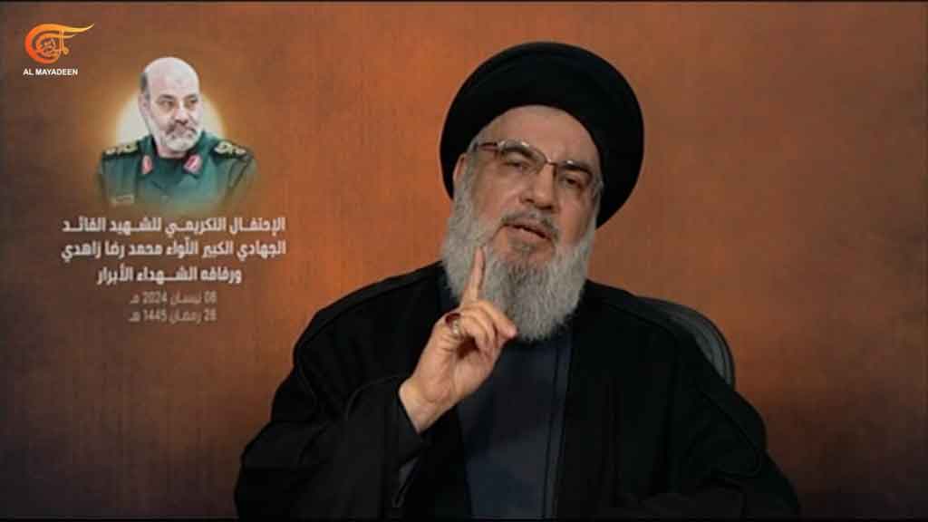 Durante su discurso en memoria del mayor general Mohammad Reda Zahedi, y sus compañeros mártires iraníes, el líder político y militar de la Resistencia libanesa enfatizó que la agresión israelí contra los asesores en el consulado de la República Islámica en Damasco es la mayor de su tipo en Siria en años.