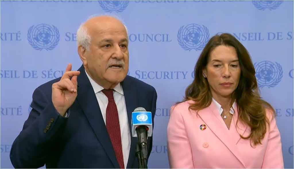 “Esperamos sinceramente, después de 12 años desde que cambiamos a estado observador, que el Consejo de Seguridad se eleve para implementar el consenso global sobre la solución de dos estados, admitiendo al Estado de Palestina como miembro pleno”, dijo el diplomático ante la prensa.
