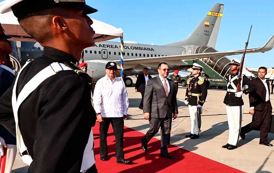 En nombre del presidente @NicolasMaduro, damos la bienvenida nuevamente a nuestro país al presidente de Colombia @petrogustavo, con quien tenemos una importante agenda en común por el bien de nuestros pueblos y de la región. Sigue triunfando la hermandad y la diplomacia de paz. pic.twitter.com/yAPh33VR7p