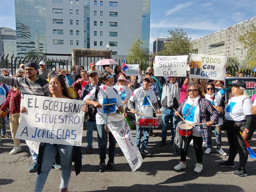 Glas, que permanece en huelga de hambre y denunció maltratos, también participa en la diligencia conectado desde la cárcel de máxima seguridad La Roca, en Guayaquil, donde se encuentra desde el pasado sábado.