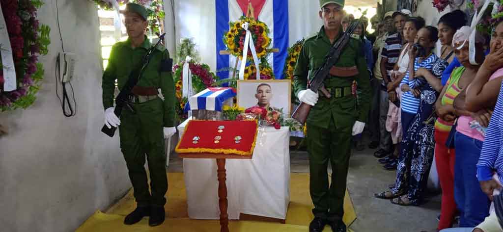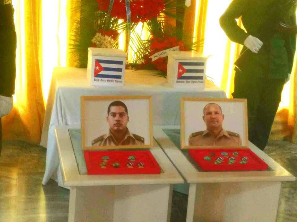Los miembros de las FAR se despiden de los combatientes Mayor Dairon González Espinosa, 1re Tte Carlos Enrique Frómeta Rodríguez y Stte Yunier Céspedes Escalona.
