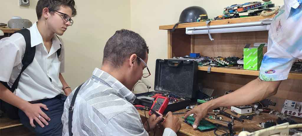 Las piezas de repuesto, dijo, y demás se nos dificulta por el bloqueo, pero el trabajo nos permite por ejemplo, la reconstrucción de autoclaves que sirven para la esterilización, incluso equipos de tecnología complejas, gracias a ello funciona el tomógrafo del Hospital Manuel Ascunce, además de monitores.