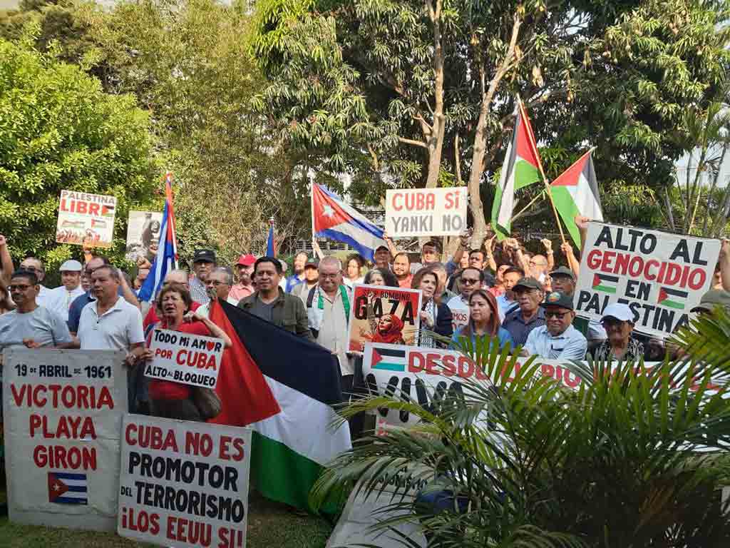 En otra parte de su mensaje, el diplomático cubano denunció la historia de agresiones que sufre el pueblo palestino, ahora por parte de Israel, amparado por “el imperialismo estadounidense” pero, puntualizó, los palestinos siguen sin levantar la bandera blanca, se mantienen en pie de lucha.