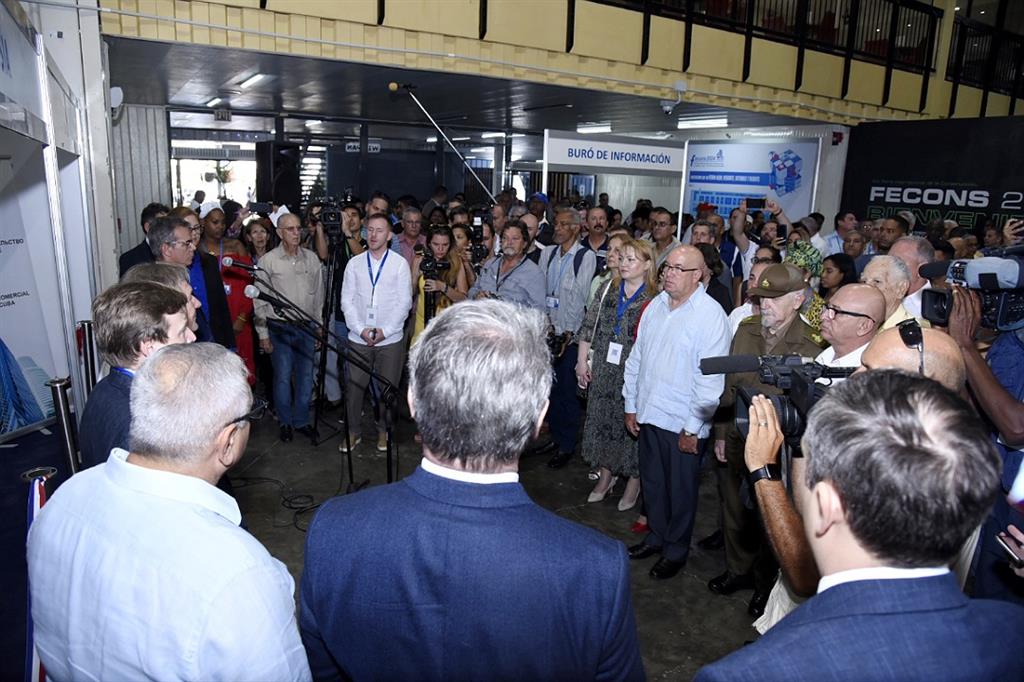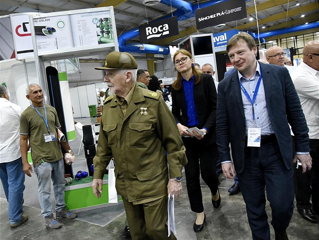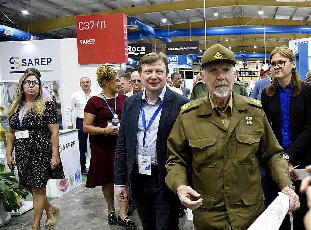 El Comandante de la Revolución y vice primer ministro Ramiro Valdés; el titular de la Construcción en la isla René Mesa; y el embajador de Rusia en La Habana, Víctor Coronelli, estuvieron entre las personalidades del acto inaugural y la posterior apertura del stand ruso.