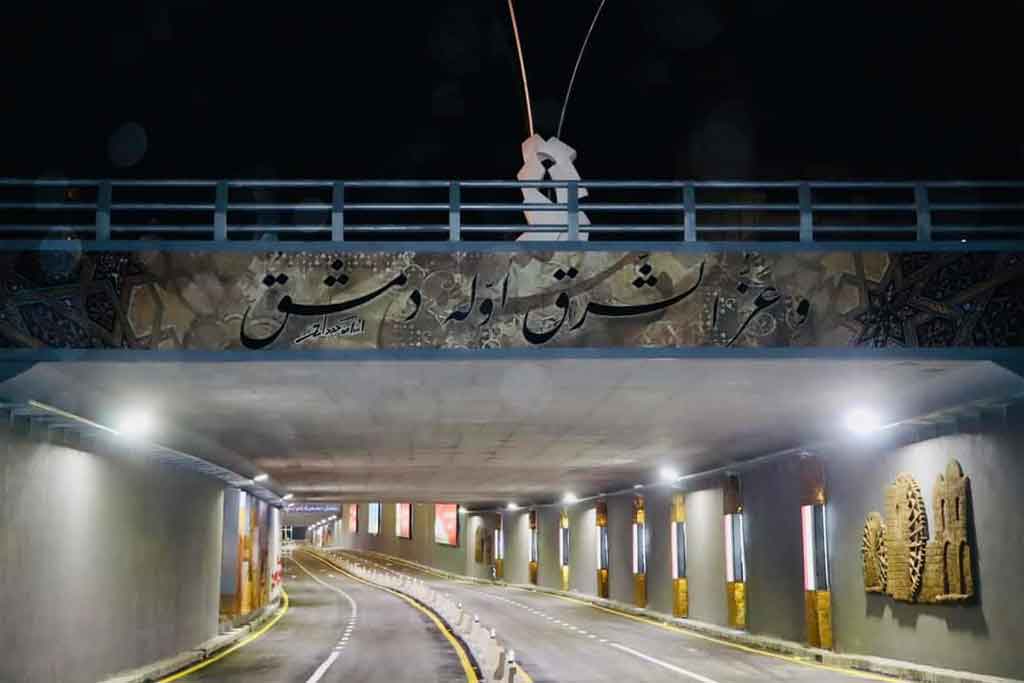 Cuando se entra al túnel se observa la frase “Esta es Damasco” del gran poeta sirio Nizar Qabbani, y título de uno de sus poemas más famosos que describen la firmeza y lucha de Damasco.