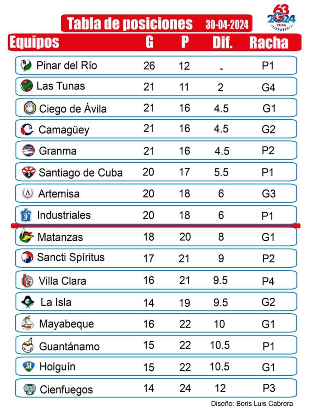Tras los partidos de hoy Pinar del Río mantuvo la punta con balance de 26-12, seguido por Las Tunas (21-11), Granma, Ciego de Ávila y Camagüey (21-16), Santiago de Cuba (20-17) y Artemisa e Industriales (20-18).