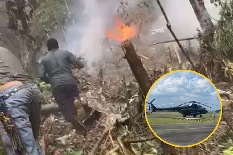 A borde del helicóptero Mil MI-17, que antes de caer perdió comunicación con la base mientras sobrevolaba el municipio de Santa Rosa, viajaban nueve suboficiales, oficiales y soldados, que perdieron la vida debido al siniestro.