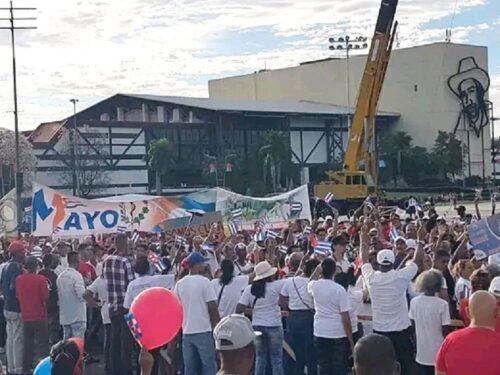 Como es tradición en la suroriental provincia, la plaza de la Revolución Mayor General Antonio Maceo Grajales acogió la marcha convertida en tribuna para exigir el fin del genocida bloqueo que por más de 60 años impone el gobierno de Estados Unidos contra el pueblo de Cuba.
