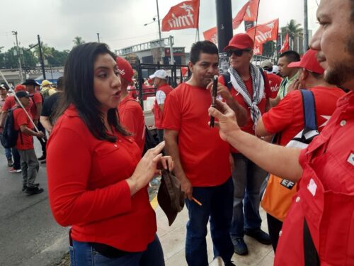 Lourdes Arqueta, secretaria de Organización del FMLN, quien acompañó a los manifestantes expresó su apoyo a los trabajadores y criticó la reforma del artículo 248 de la Constitución que le permitirá al gobierno hacer cualquier tipo de enmienda a conveniencia del nuevo grupo de poder económico que se suma a la oligarquía tradicional.