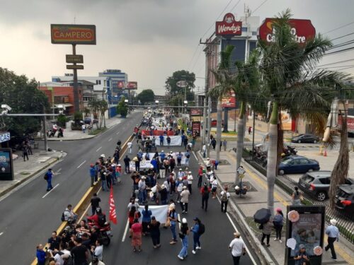 Entre los que marcharon estuvo también Walter Raudales, presidente del Movimiento de Izquierda Salvadoreña (MIS) quien acompañó a los trabajadores con el lema de que “sin sindicatos no hay democracia”.