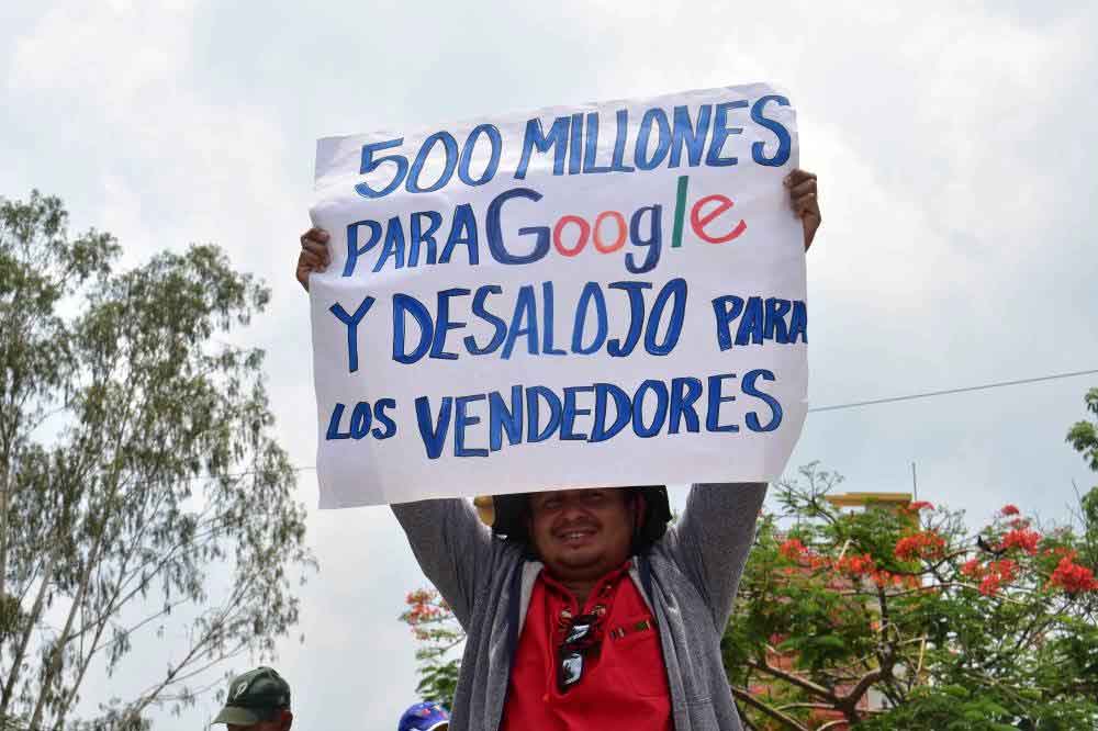 Los manifestantes también hicieron alusión a los recientes desalojos de vendedores en el Centro Histórico y a la apertura de las oficinas de Google que será una inversión de 500 millones de dólares de un país en crisis.