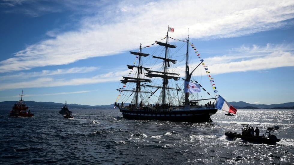 Antes del encendido del pebetero, los marselleses y los turistas presentes disfrutaron de un desfile naval de mil embarcaciones que escoltaron al Belem y de un espectáculo de la Patrulla Aérea de Francia.