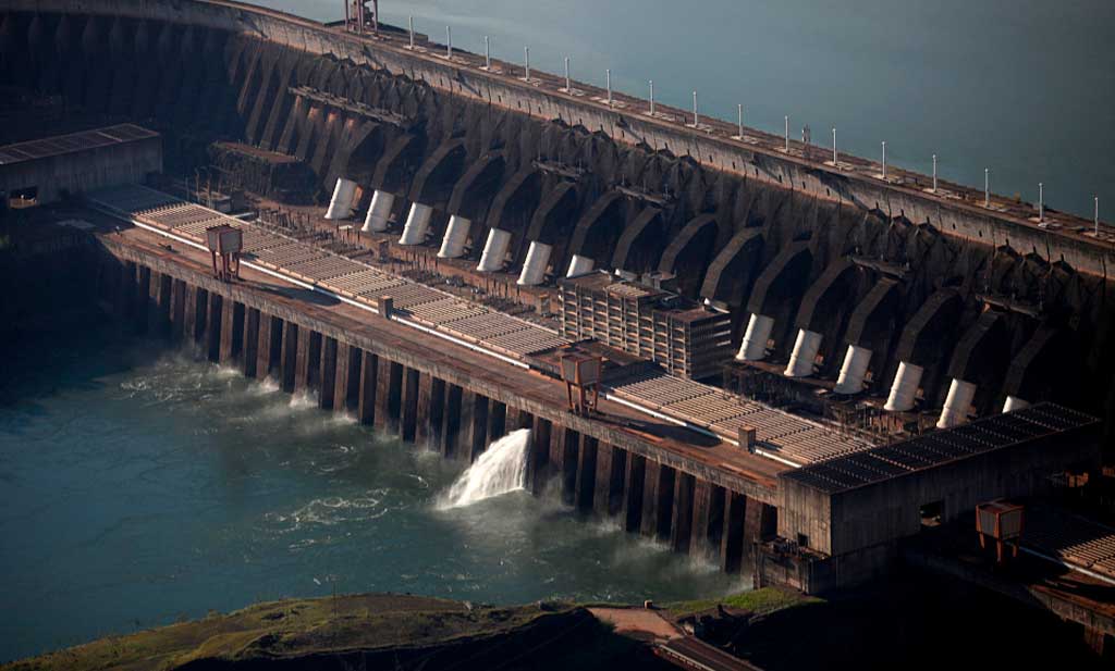 La presa hidroeléctrica de Itaipú está situada entre Paraguay y Brasil sobre el fronterizo río Paraná, es la principal de América y la segunda más grande del mundo después de la Tres Gargantas de China.
