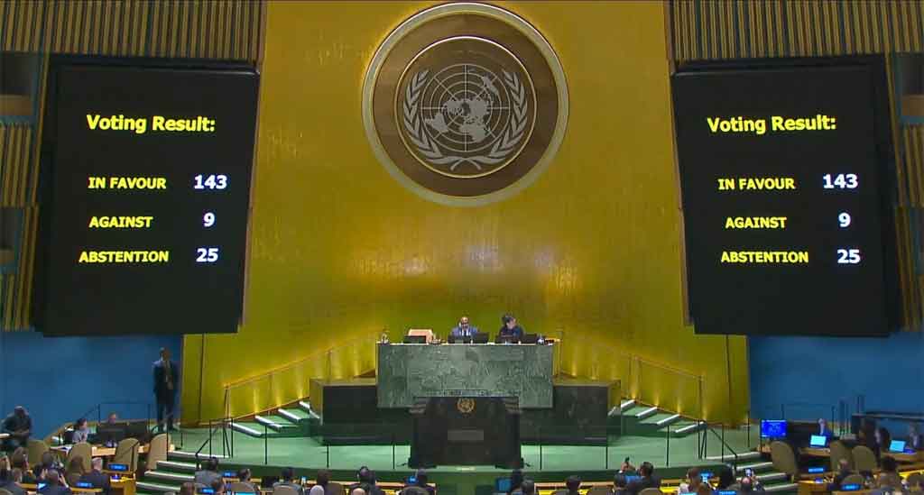 La aprobación abrumadora de la resolución confirma además el respaldo internacional a la solución de dos estados en el conflicto, lo que se suma al reconocimiento del Estado palestino por más de 140 miembros de la ONU.