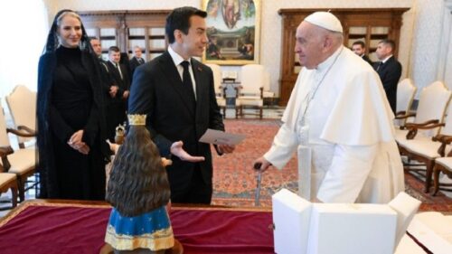 El presidente ecuatoriano ofreció al Sumo Pontífice una reproducción de la Virgen del Cisne realizada por artesanos de esa nación, en tanto Francisco obsequió una escultura de bronce, que representa una paloma con una rama de olivo, con el mensaje Sean mensajeros de la paz, y varios documentos, incluido el Mensaje para la Paz de este año.