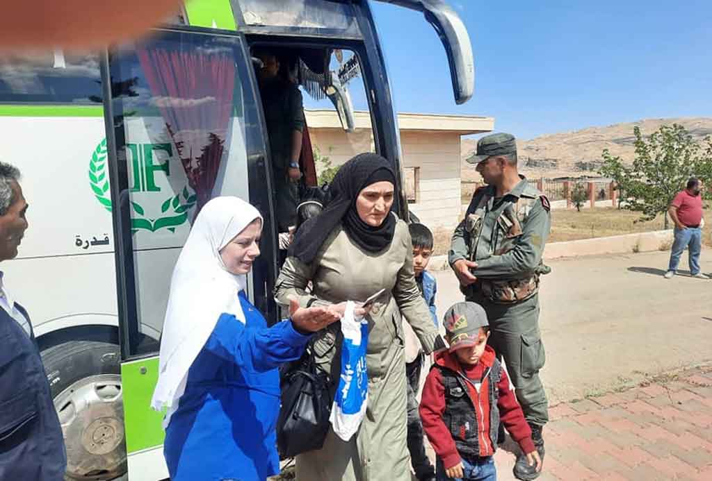 Los refugiados trajeron algunas de sus pertenencias y se dirigieron en camiones y autobuses a sus localidades liberadas del terrorismo tras registrar sus datos personales por parte de una comisión especializada integrada por los representantes de varios ministerios.