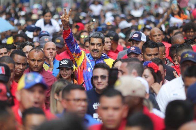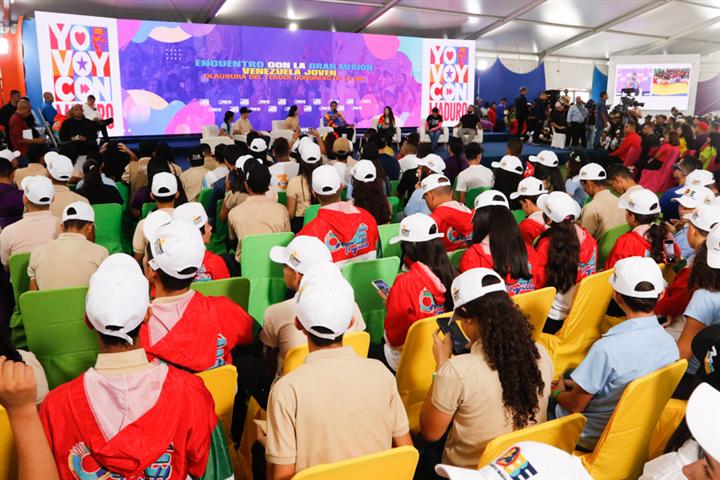 Los delegados y miles de jóvenes marcharon por calles y avenidas de Caracas, antes del encuentro en Miraflores, en rechazo a las medidas coercitivas unilaterales impuestas por Estados Unidos y sus aliados, movilización a la que se incorporó Maduro.