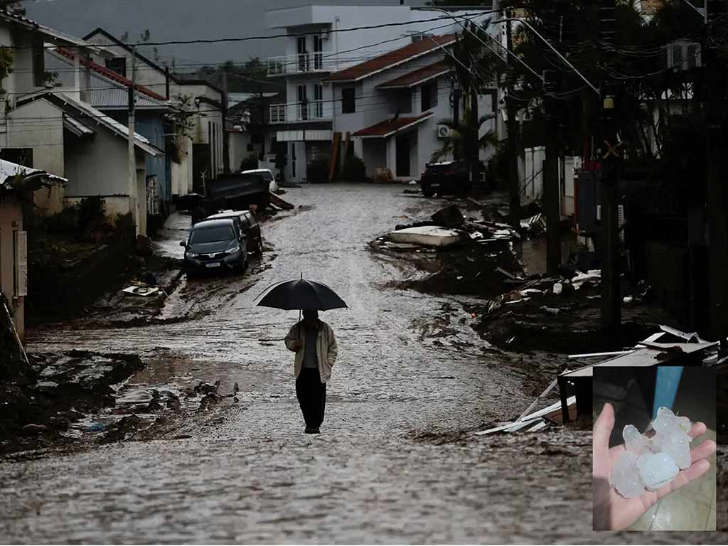 Ráfagas de viento por encima de los 80 kilómetros por hora y granizo ocurrieron entre miércoles y jueves sobre Rio Grande do Sul y el estado de Santa Catarina.