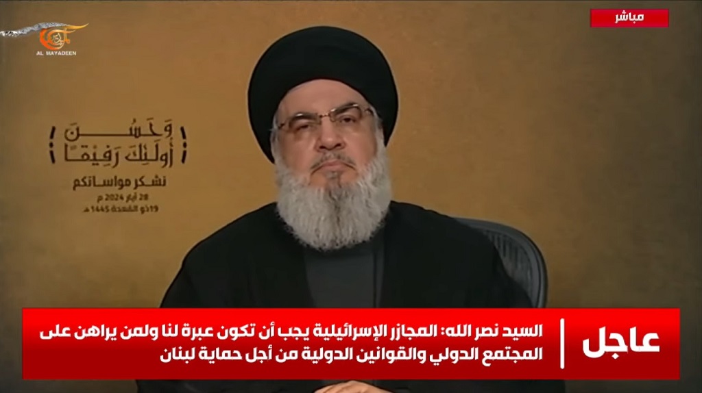 En este punto, Nasrallah reclamó una mayor condena a los crímenes israelíes, “lo que debería ser una razón poderosa para que el mundo presione para detener la agresión”.