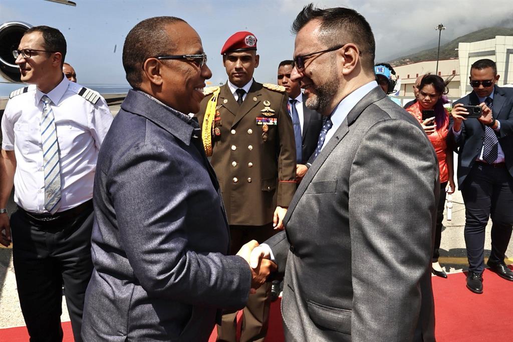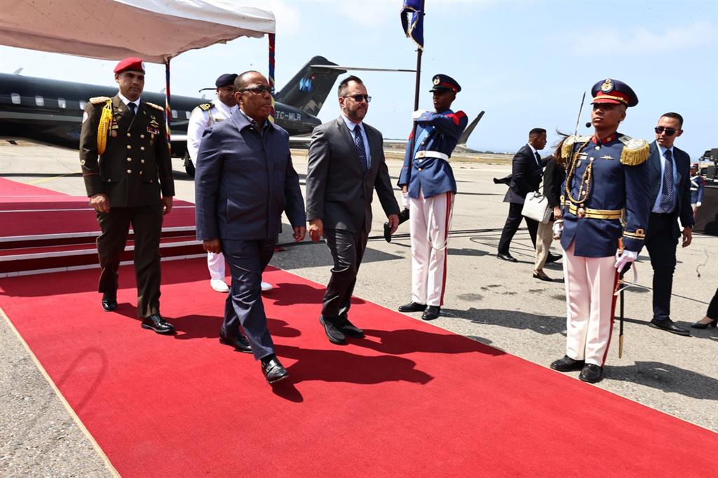 Gil dio la bienvenida con los honores correspondientes al jefe de Gobierno santotomense en el aeropuerto internacional Simón Bolívar, de Maiquetía, estado de La Guaira, quien viajó acompañado por el ministro de Negocios Extranjeros, Cooperación y Comunidades, Gareth Haddad do Espirito Santo Guadalupe.