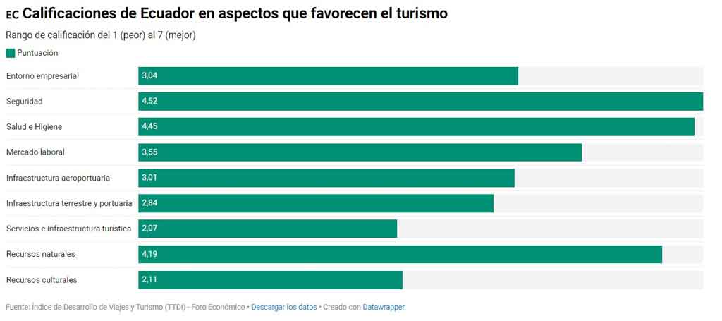 En el caso de esta nación sudamericana, la puntuación responde a bajas calificaciones en ítems como servicios e infraestructura turística, recursos culturales y recursos no recreativos.