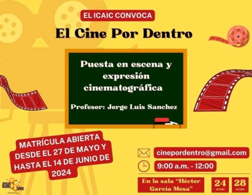 La Habana, 31 may (Prensa Latina) El Instituto Cubano del Arte e Industria Cinematográficos (Icaic) convoca hoy al programa teórico-práctico El cine por dentro, en apoyo a la formación de estudiantes y egresados de carreras afines a la industria cinematográfica.