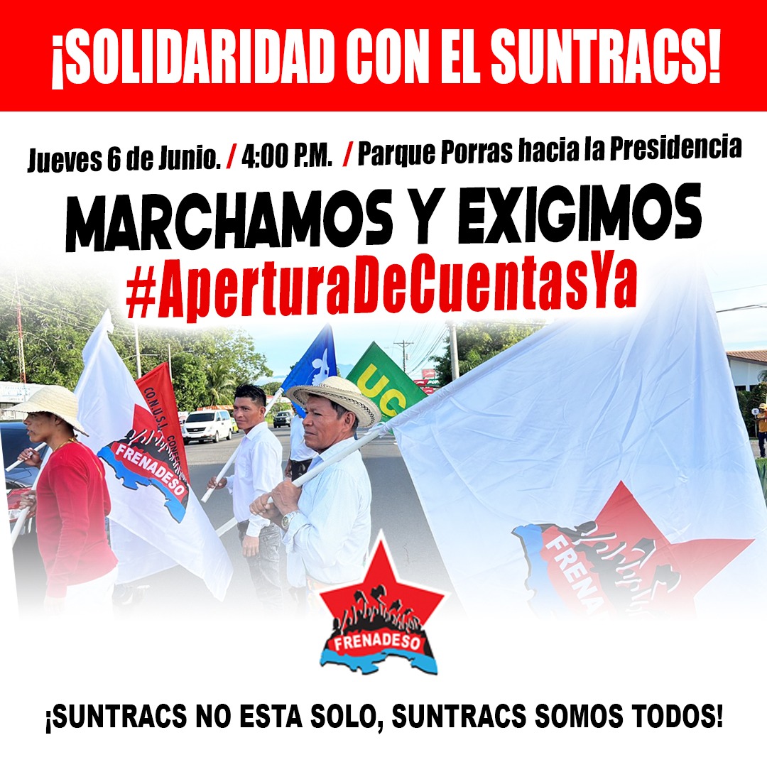 La caminata y concentración en solidaridad con Suntracs serán respaldadas por varias organizaciones sindicales y populares que integran la alianza Pueblo Unido por la Vida, precisó el coordinador del Frente Nacional por la Defensa de los Derechos Económicos y Sociales(Frenadeso), Jorge Guzmán.