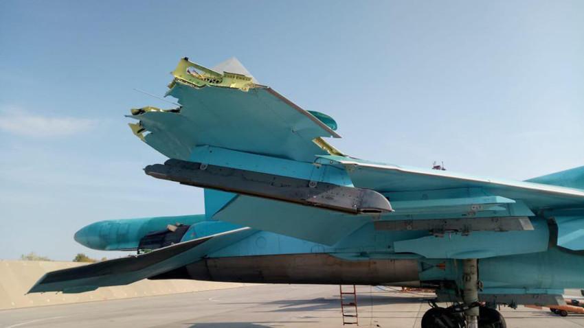 El Sujoi Su-34 es un cazabombardero supersónico de mediano alcance de cuarta generación avanzada, bimotor, biplaza y apto para todo tipo de clima. Voló por primera vez en 1990, destinado a las Fuerzas Aéreas Soviéticas, y entró en servicio en 2014 con la Fuerza Aérea Rusa.