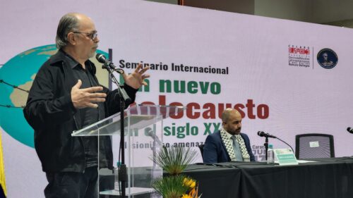 Al intervenir en el seminario internacional “Un nuevo holocausto en el siglo XXI, el sionismo amenaza al mundo”, organizado por el Centro de Estudios Latinoamericanos y del Caribe Rómulo Gallegos (Celarg), el diplomático recordó que pasaron más de siete décadas y todavía esperan por una solución.